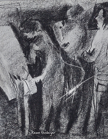 Die Rückkehr zum Elementaren. Das Schneiden in Linoleum ist für Khodayar ein meditativer Akt der Reduktion. Jeder Druck der limitierten Auflage trägt die Spuren des Handwerks – leichte Variationen machen jedes Blatt zu einem Unikat. Die Wirkung ist kraftvoll, ehrlich und haptisch erfahrbar.